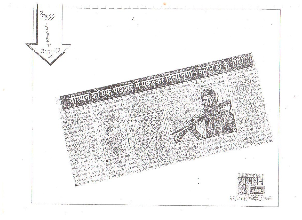 Capt. D. K. Giri underwent very rigorous and professional training at the Infantry School, Belgaum on all Weapons, Tactics and Commando warfare. Thereafter, he underwent training at the Army School of Physical Training, Pune, on Battalion Sport Weapons in Mhow, on Counter Insurgency and Jungle Warfare in Assam, on Mountain Warfare in Kashmir. Besides t he above he underwent training in intelligence collection, security and various other aspects of safety through the strict disciplines of the armed forces.